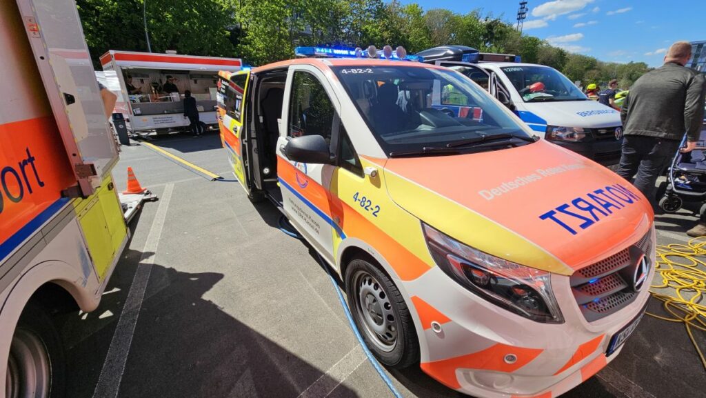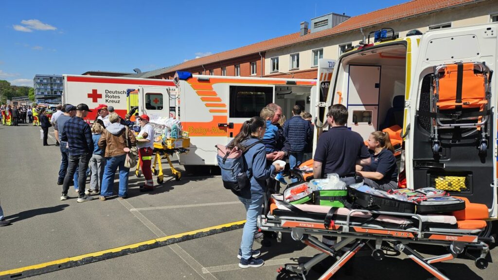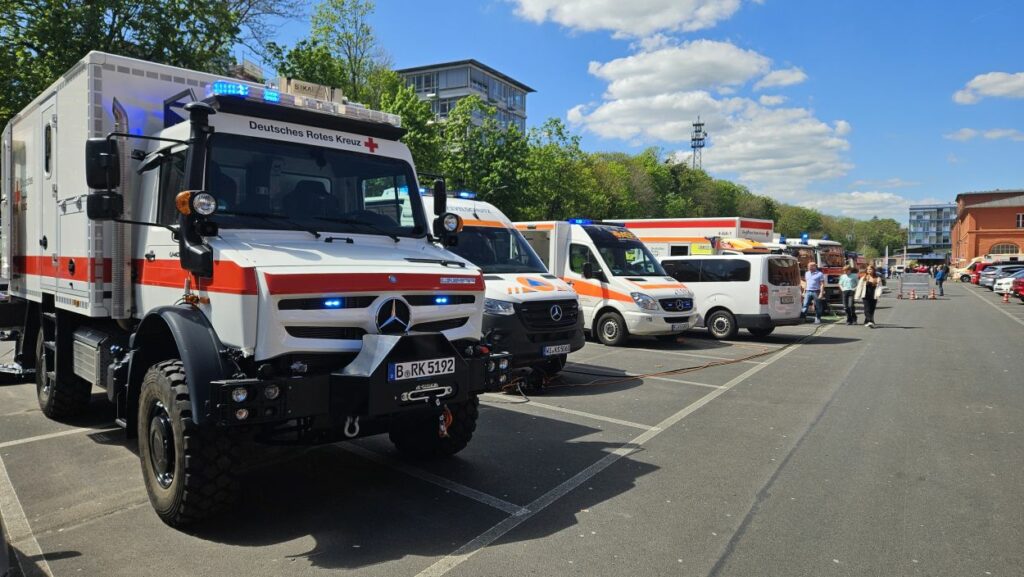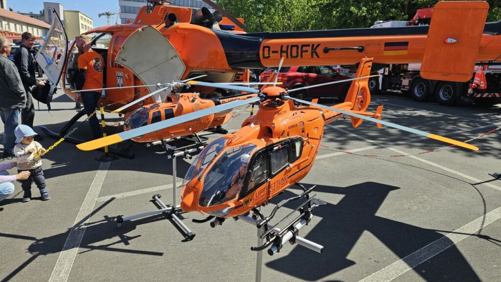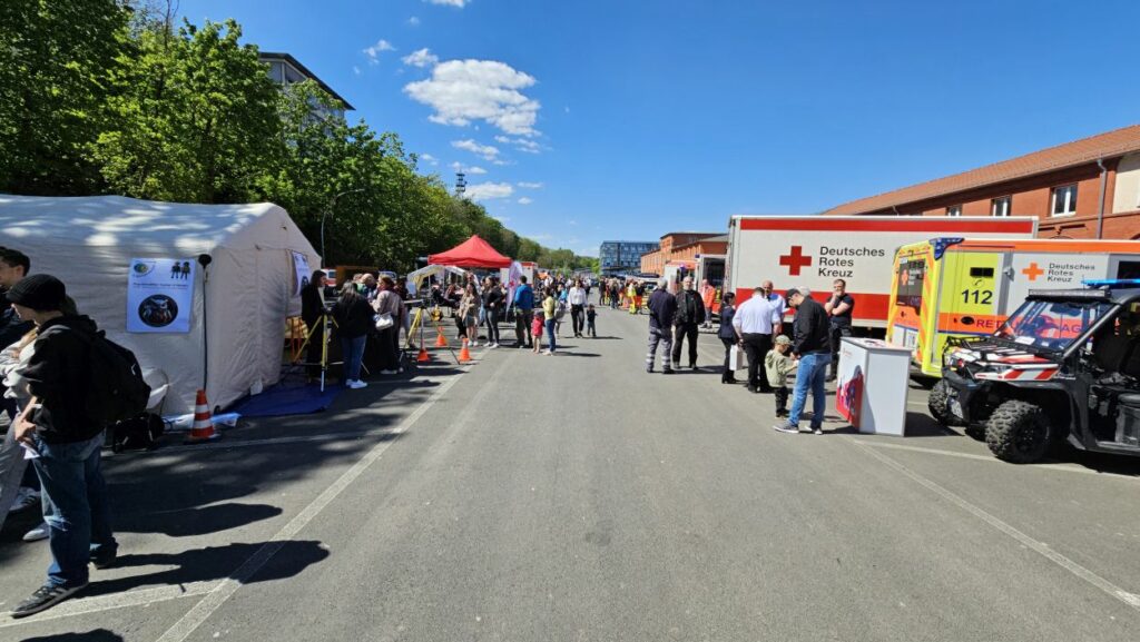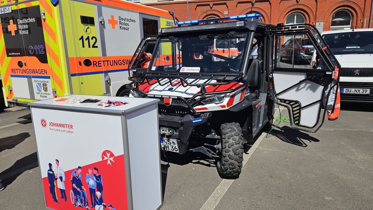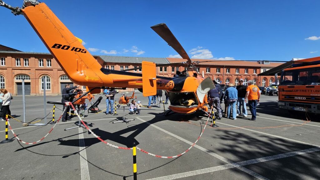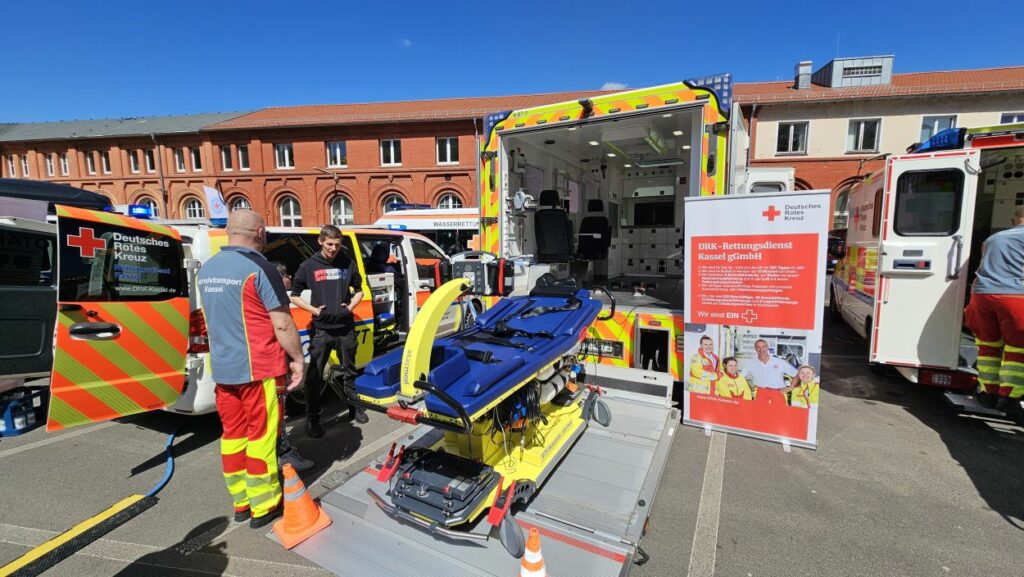 Seit 1974 war Christoph 7 über 55.000 Mal für Menschen in Nordhessen im Einsatz. Viele dieser Rettungsflüge entschieden über Leben und Tod. Auf dem Parkplatz am Südflügel des Kasseler Kulturbahnhofs präsentierten Feuerwehr, DRK, ASB, JUH und weitere Organisationen moderne und historische Rettungsmittel, darunter der legendäre BO 105, das erste Modell von Christoph 7. Neben Notarzt- und Intensivfahrzeugen wurden auch Spezialfahrzeuge wie ein Schwerlast-Rettungswagen und ein geländegängiger Krankenwagen des Zivilschutzes gezeigt. Für große und kleine Besucher gab es ein vielfältiges Programm: Ein Flugsimulator des Fördervereins Christoph 7 lud zum Probesitzen ein, während das Jugendrotkreuz mit einem Drohnenspiel Such- und Rettungsaufgaben simulierte. Kulinarisch wurde die Feier mit Kartoffelsuppe aus der Feldküche des DRK abgerundet – wahlweise vegetarisch oder klassisch mit Wursteinlage. Bei Kaiserwetter konnten die zahlreichen Besucher sich über den Zivilschutz informieren.