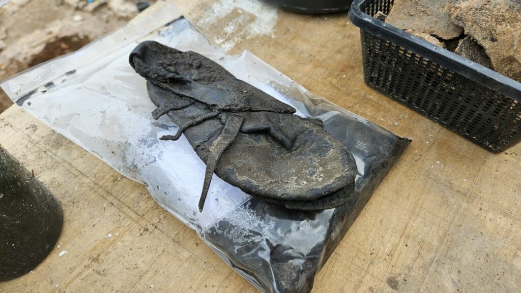 Besonders bemerkenswert war, dass unter den Kriegsresten noch ältere, mittelalterliche Gruben entdeckt worden waren. Aufgrund günstiger Erhaltungsbedingungen konnten die Archäologen dort sogar organisches Leder bergen – darunter ein gut erhaltener mittelalterlicher Lederschuh.