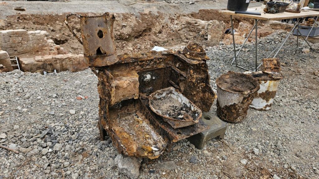 Seit Ende März hatten die Fachleute auf einer rund 350 Quadratmeter großen Fläche gegraben – den bislang umfangreichsten archäologischen Untersuchungen in Kassel seit Jahren. Unter bis zu drei Meter hohen Schichten aus Kriegstrümmern entdeckten sie Reste von Hausmauern, Pflasterbelägen, Kücheninventar und sogar eine erhaltene Kutsche. In einer zerstörten Küche fanden sie einen Kochkessel neben einem Herd – und ein vollständig erhaltenes, angestochenes Hühnerei, das offenbar als Mahlzeit gedacht gewesen war, bevor am 22. Oktober 1943 Bomben große Teile der Kasseler Altstadt zerstörten.