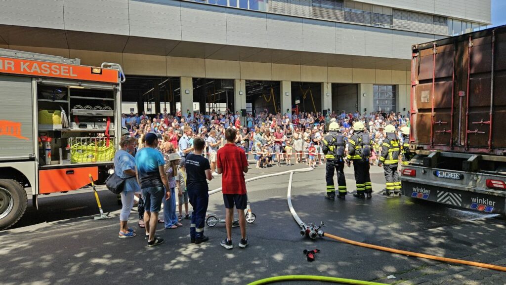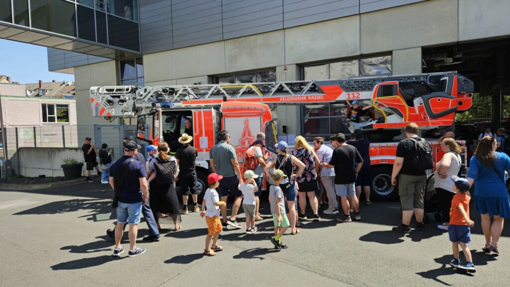 Kassel – Am Sonntag öffnete die Berufsfeuerwehr Kassel von 10 bis 18 Uhr ihre Türen auf der Feuer- und Rettungswache 1 in der Wolfhager Straße. Zahlreiche Besucherinnen und Besucher nutzten die Gelegenheit, hinter die Kulissen der Feuerwehr zu blicken und die Arbeit der Einsatzkräfte hautnah zu erleben.