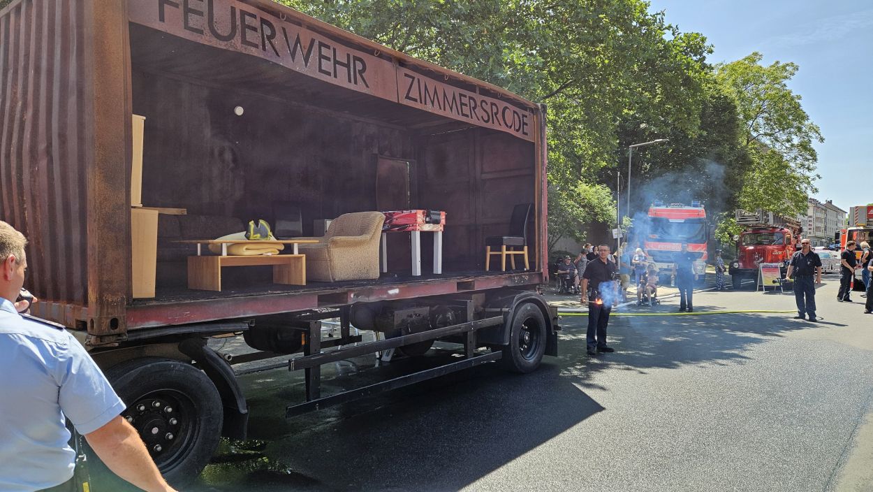 Der Container zur Vorführung eines Zimmerbrandes, wurde von der Feuerwehr Zimmersrode aus dem Schwalm-Eder-Kreis bereit gestellt. Dieser kann für die Öffentlichkeitsarbeit gegen eine Aufwandsentschädigung ausgeliehen werden.