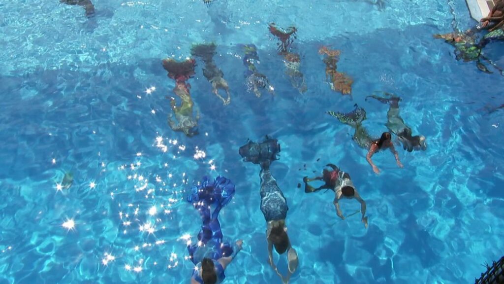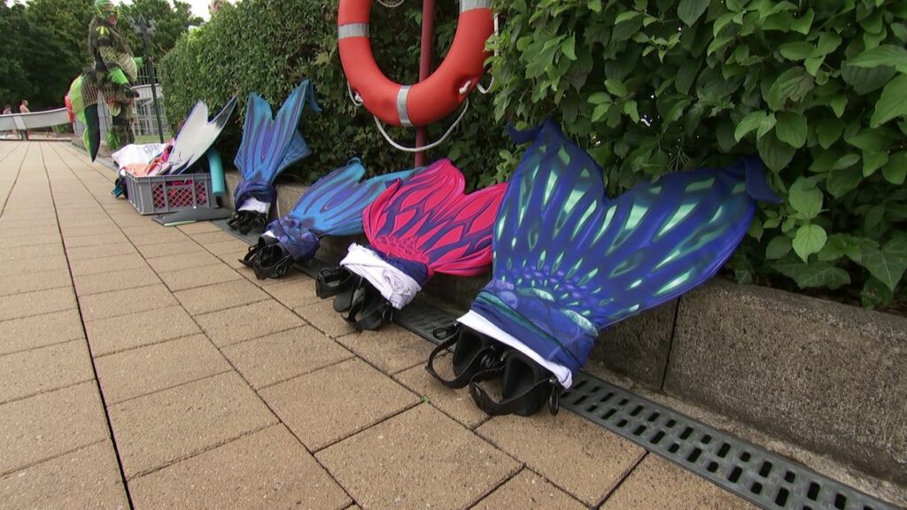 Die Veranstaltung bot weit mehr als nur einen Schwimmkurs. In kleinen Gruppen wurden unter Wasser elegante Choreografien einstudiert, es entstanden unzählige Fotos in märchenhafter Kulisse – sowohl im als auch unter Wasser. Auf einer kleinen Verkaufsmeile konnten die Gäste zudem allerlei Kuriositäten entdecken: Von schimmernden Accessoires über handgefertigte Schmuckstücke bis hin zu Flossen aller Art – hier fand jeder etwas, das ihn noch tiefer in die Welt der Mermaids eintauchen ließ.