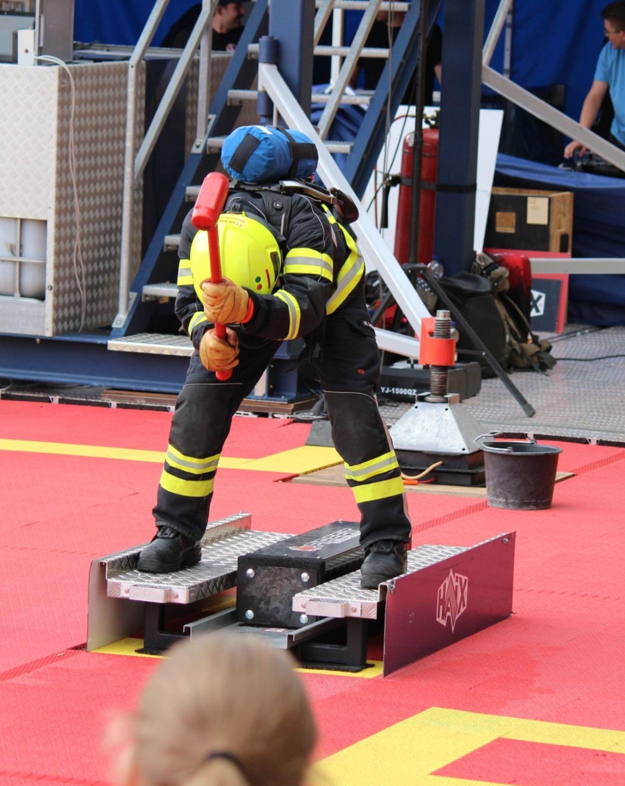 Doch was verbirgt sich hinter dem Begriff „FireFit“? Der Wettbewerb simuliert unter realitätsnahen Bedingungen typische Feuerwehrtätigkeiten unter Belastung. In voller Schutzkleidung mit Atemschutzgerät gilt es, ein 19 kg schweres Schlauchpaket auf einen 12 Meter hohen Turm zu tragen, ein weiteres Paket per Seilzug nach oben zu befördern, ein 80 kg schweres Gewicht mittels Hammerschlägen zu bewegen und anschließend einen mit Wasser gefüllten C-Schlauch über eine Strecke von 23 Metern zum „Löscheinsatz“ zu bringen. Den krönenden Abschluss bildet die Rettungspuppe „Randy“, die – 80 kg schwer – über 30 Meter hinweg rückwärts gezogen werden muss. Erst wenn ihre Füße die Ziellinie überqueren, ist der Parcours beendet.