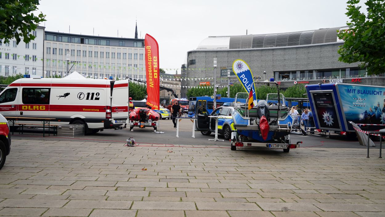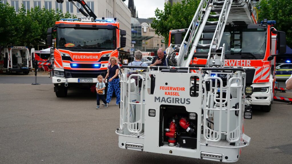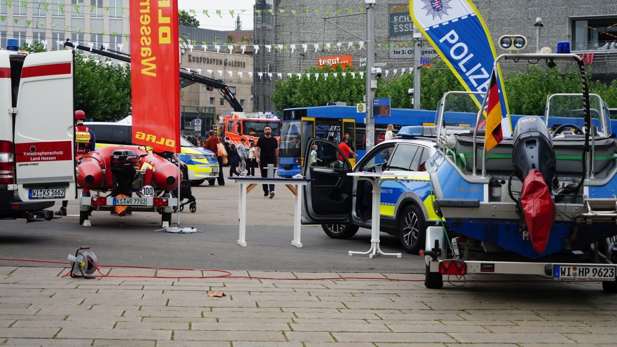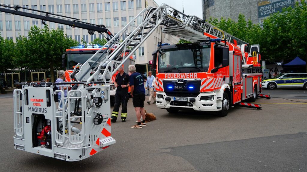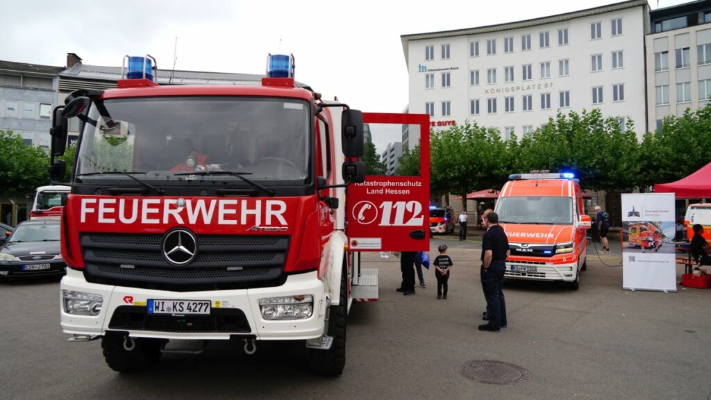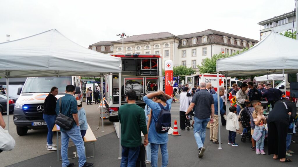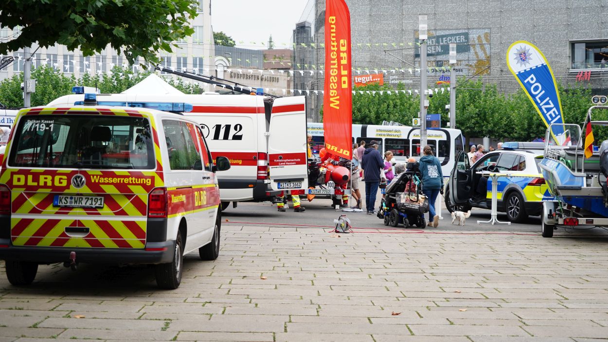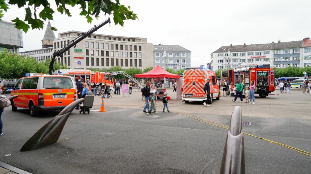 Kassel – Unter dem Motto „Respekt zeigen – Respekt erfahren: Begegnungen mit der Blaulichtfamilie“ hat am Samstag auf dem Königsplatz in Kassel eine große Informations- und Mitmachveranstaltung des Polizeipräsidiums Nordhessen stattgefunden. Von 10 bis 16 Uhr nutzten zahlreiche Bürgerinnen und Bürger die Gelegenheit, mit Einsatzkräften von Polizei, Feuerwehr, Rettungsdiensten, dem Technischen Hilfswerk sowie weiteren Hilfsorganisationen ins Gespräch zu kommen und einen Blick hinter die Kulissen der Arbeit der sogenannten „Blaulichtfamilie“ zu werfen.