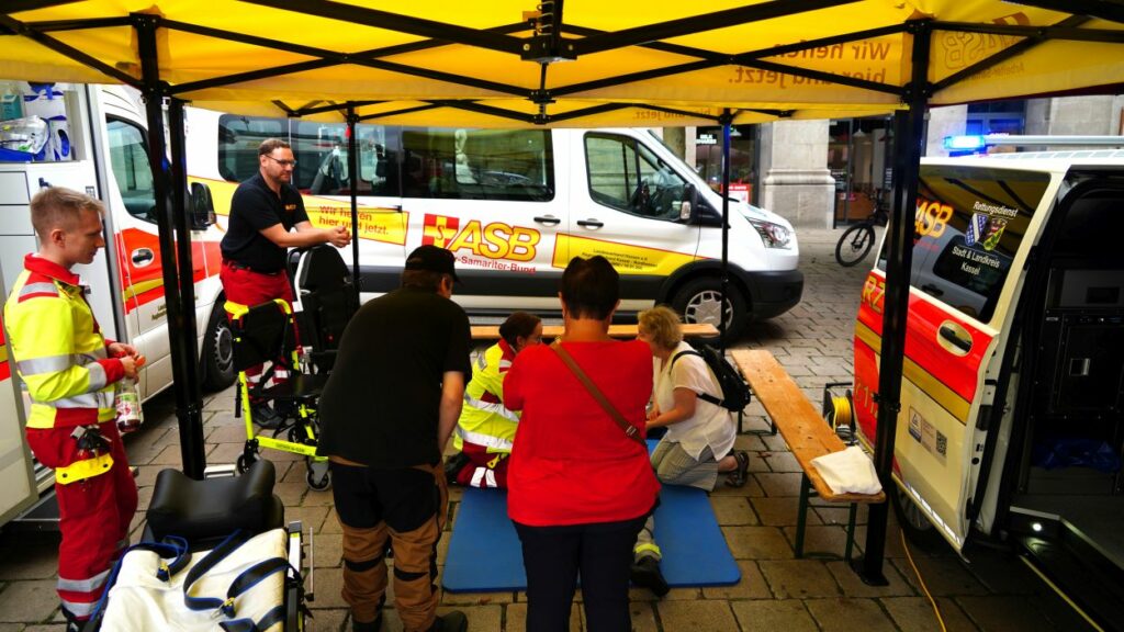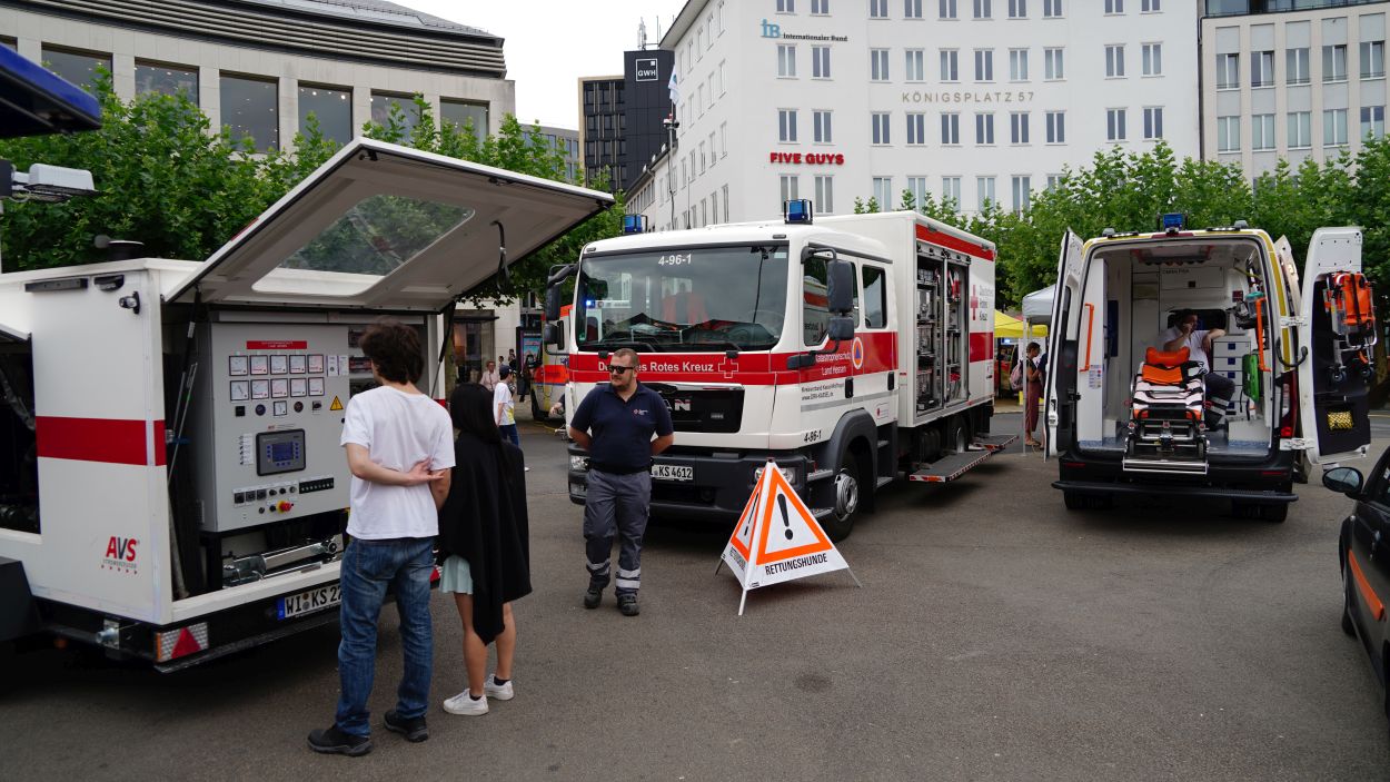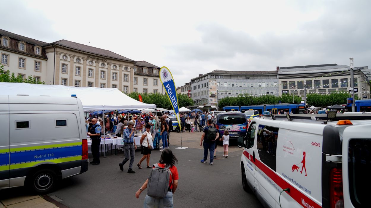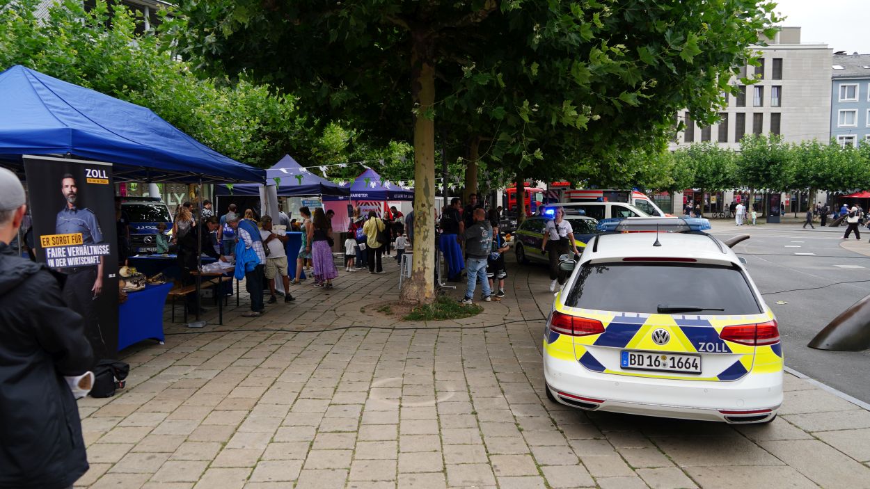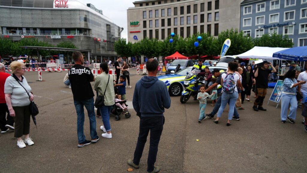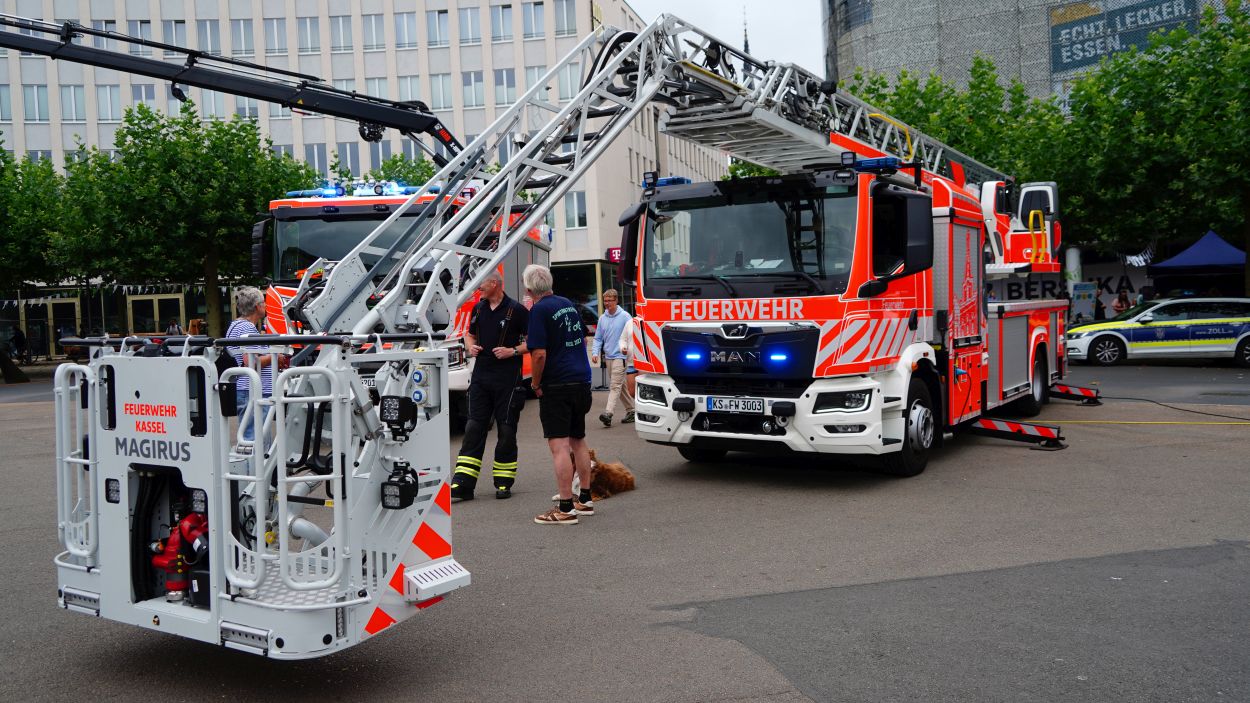 Kassel – Unter dem Motto „Respekt zeigen – Respekt erfahren: Begegnungen mit der Blaulichtfamilie“ hat am Samstag auf dem Königsplatz in Kassel eine große Informations- und Mitmachveranstaltung des Polizeipräsidiums Nordhessen stattgefunden. Von 10 bis 16 Uhr nutzten zahlreiche Bürgerinnen und Bürger die Gelegenheit, mit Einsatzkräften von Polizei, Feuerwehr, Rettungsdiensten, dem Technischen Hilfswerk sowie weiteren Hilfsorganisationen ins Gespräch zu kommen und einen Blick hinter die Kulissen der Arbeit der sogenannten „Blaulichtfamilie“ zu werfen.