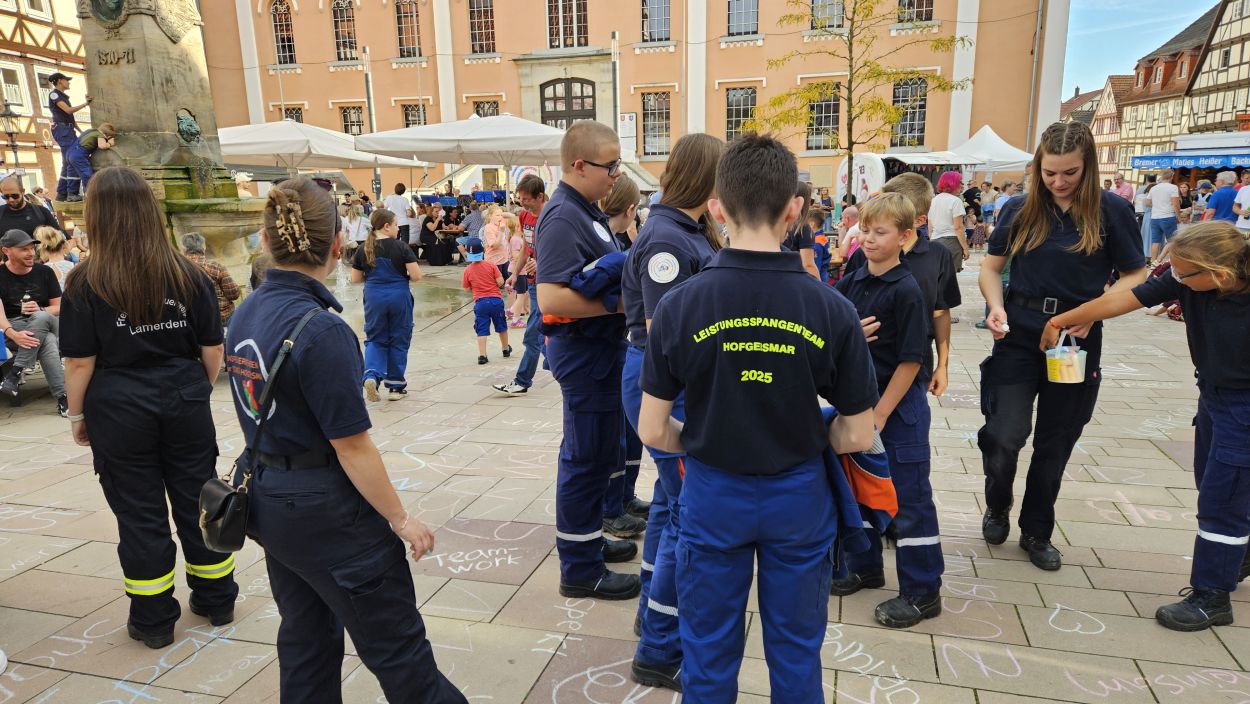Hofgeismar – Am Freitag haben rund 130 Mitglieder der Kinder- und Jugendfeuerwehren sowie Einsatzkräfte aus dem Bereich Hofgeismar mit einem besonderen Flashmob für Aufmerksamkeit gesorgt. Während des Feierabendmarktes auf dem Platz vor dem Rathaus traten sie um kurz nach 17 Uhr geschlossen auf, um die Werte der hessischen Feuerwehren in den Mittelpunkt zu stellen.