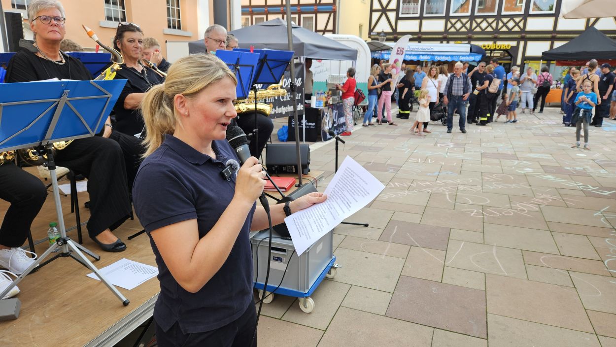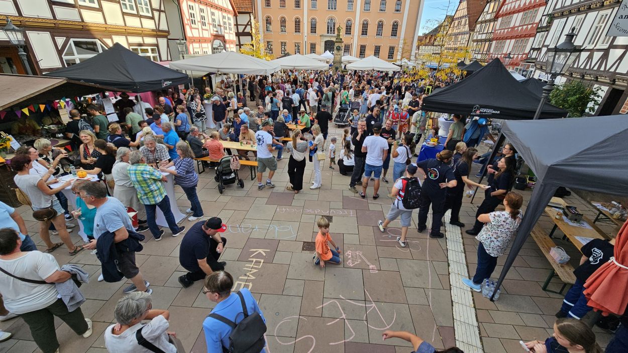 Feuerwehr-Flashmob auf dem Feierabendmarkt in Hofgeismar