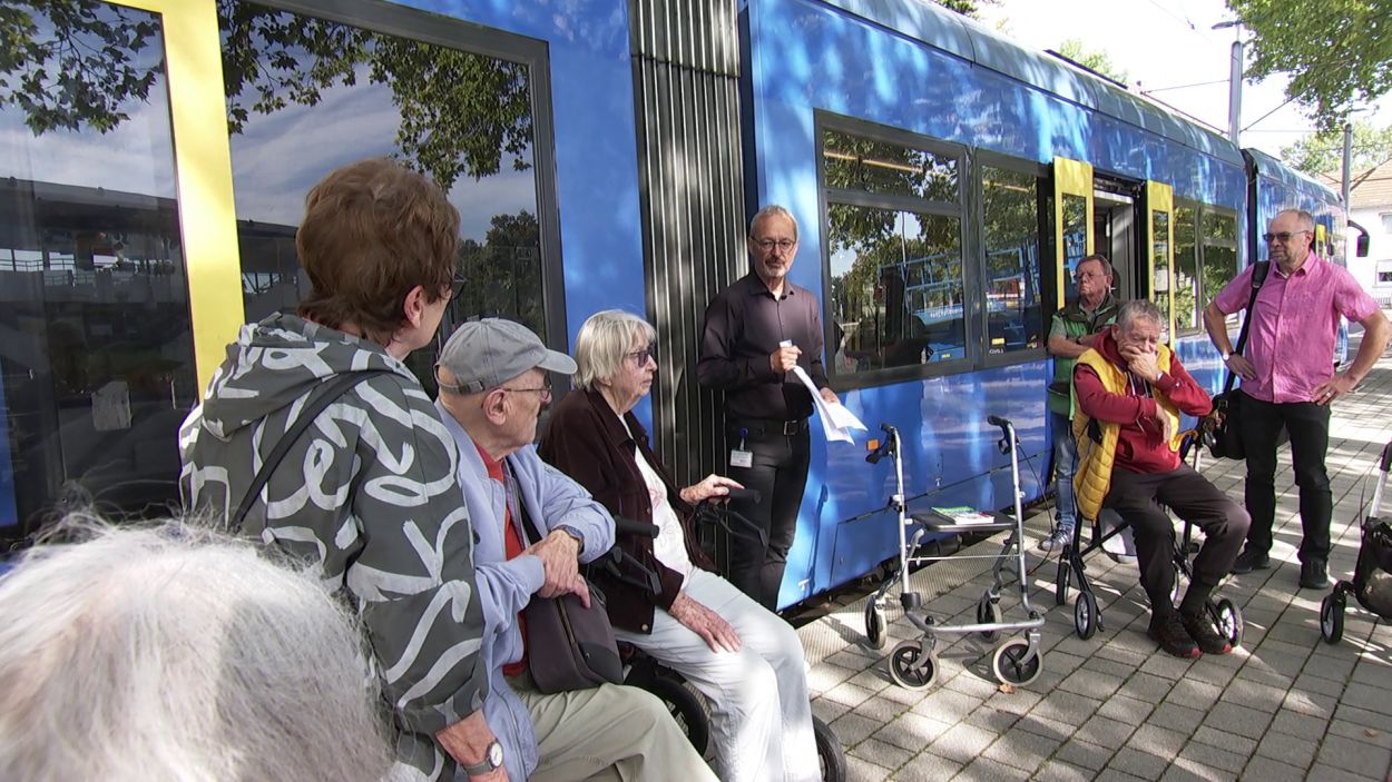 Die Teilnehmerinnen und Teilnehmer erfuhren unter anderem, welche Mobilitätshilfen in den Fahrzeugen der KVG zugelassen sind, wie ein Rollstuhl sicher im Bus oder in der Bahn aufgestellt wird und wo im Mehrzweckabteil sogar zwei Rollstühle oder Mobilitätshilfen Platz finden können. Auch das sichere Ein- und Aussteigen mit einem Rollator wurde praktisch geübt.