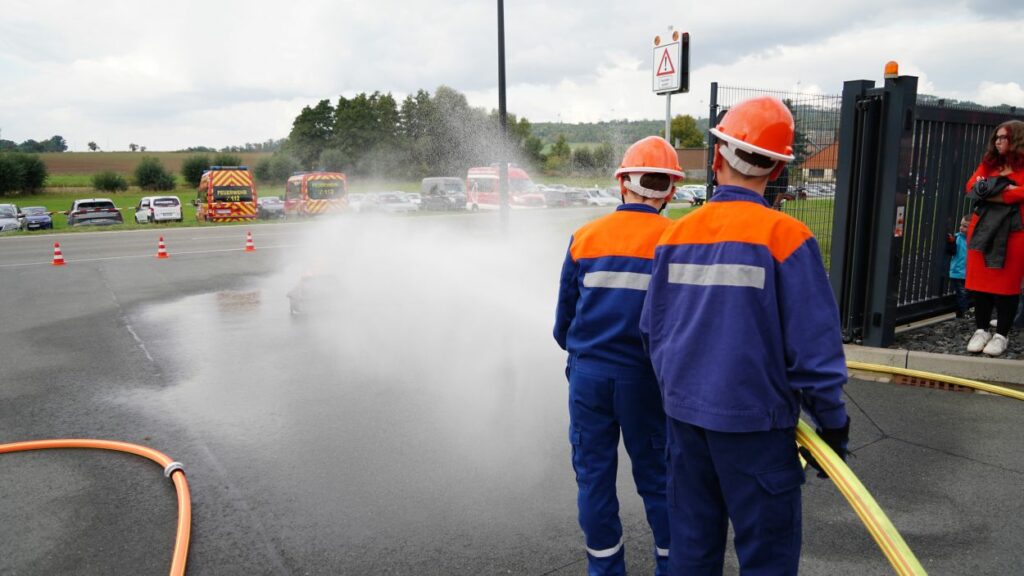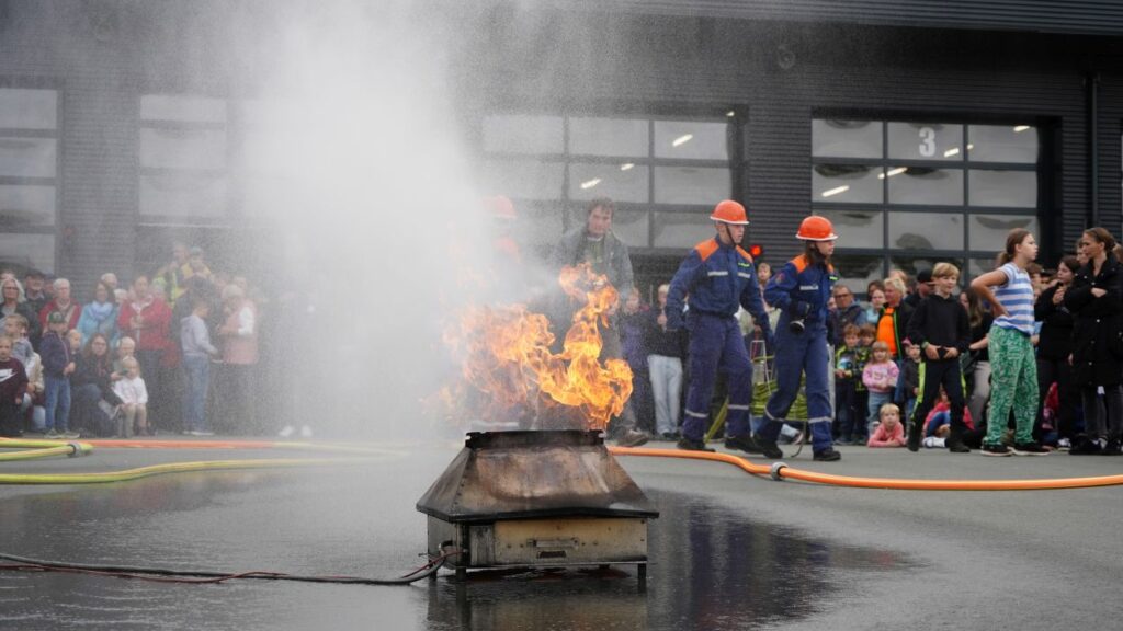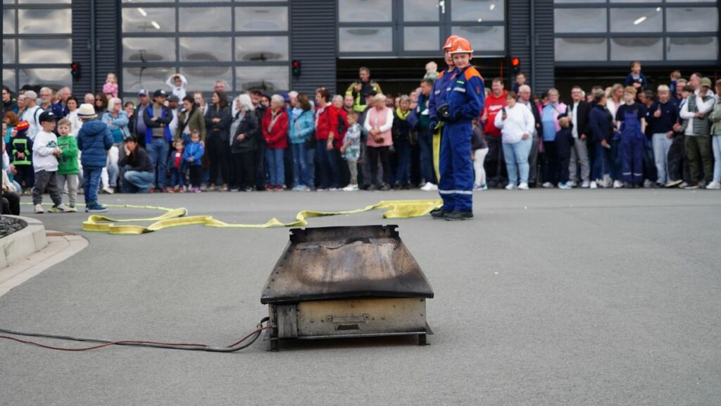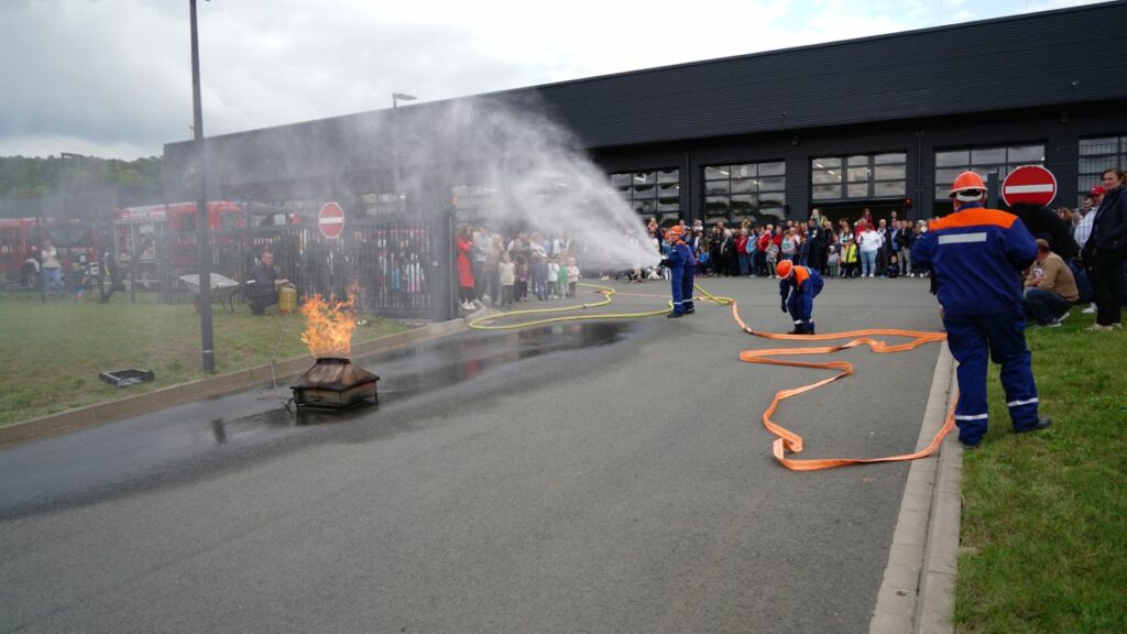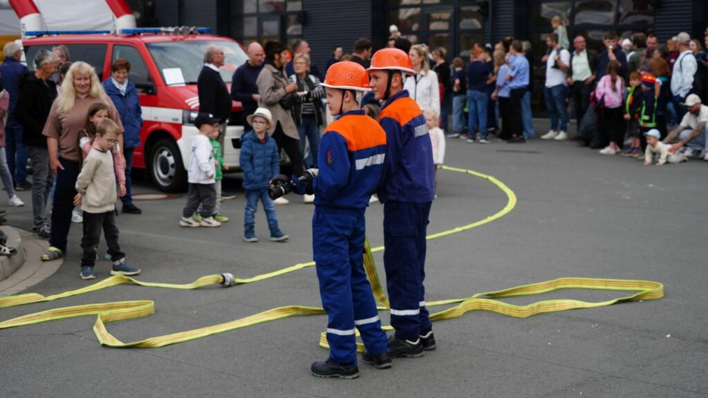 Ein Höhepunkt des Nachmittags war die Vorführung der Jugendfeuerwehr um 15 Uhr. Die Nachwuchskräfte zeigten bei einer Übung eindrucksvoll, wie ein Löschangriff aufgebaut wird. Mit viel Engagement demonstrierten die Jugendlichen ihr Können und gaben damit einen Einblick in die wichtige Nachwuchsarbeit der Feuerwehr.