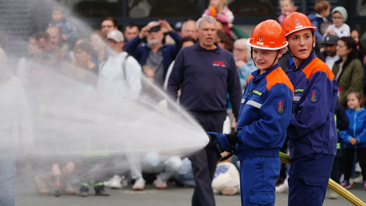 Ein Höhepunkt des Nachmittags war die Vorführung der Jugendfeuerwehr um 15 Uhr. Die Nachwuchskräfte zeigten bei einer Übung eindrucksvoll, wie ein Löschangriff aufgebaut wird. Mit viel Engagement demonstrierten die Jugendlichen ihr Können und gaben damit einen Einblick in die wichtige Nachwuchsarbeit der Feuerwehr.