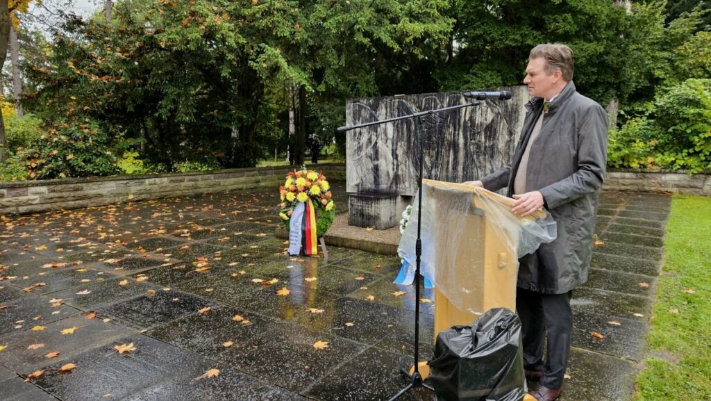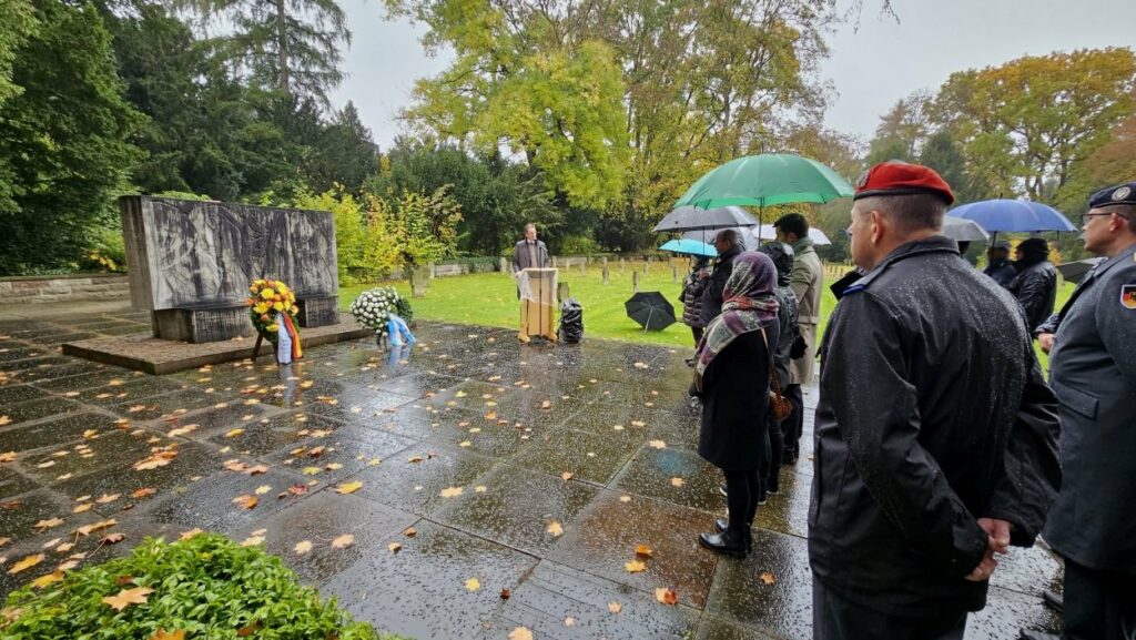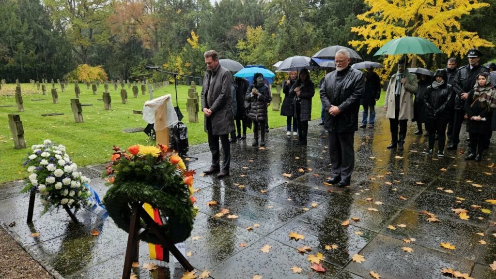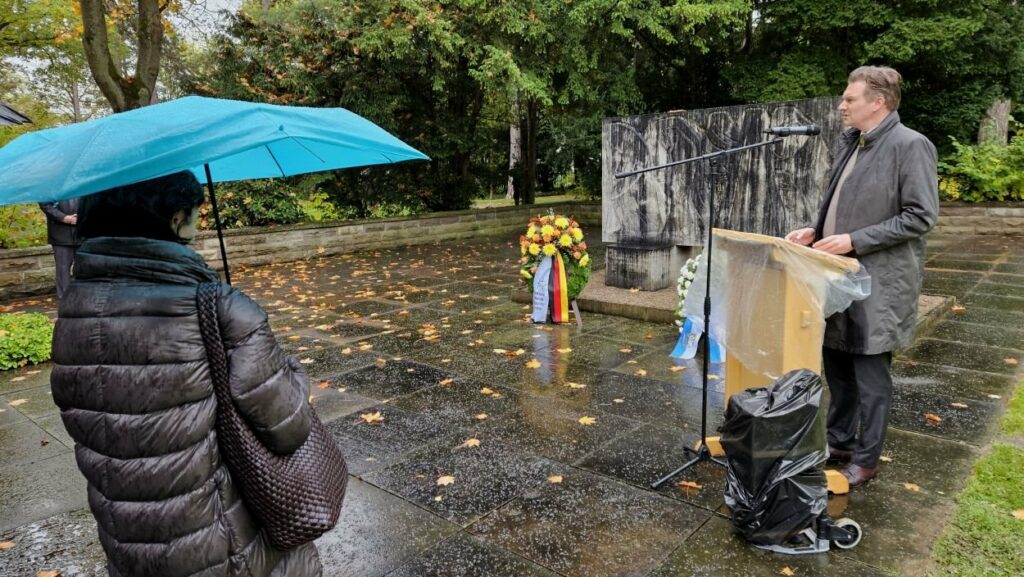 Anlässlich des Jahrestages hatten die Stadt Kassel und der Volksbund Deutsche Kriegsgräberfürsorge e. V. am heutigen Mittwoch, 22. Oktober, zu einer Gedenkstunde auf dem Hauptfriedhof eingeladen. Ab 15.30 Uhr gedachten Bürgerinnen und Bürger gemeinsam mit Vertretern aus Politik, Kirche und Gesellschaft der Opfer des Bombenangriffs. Bei der Kranzniederlegung am Ehrenmal für die Bombenopfer sowie am Gräberfeld für ausländische Kriegstote hielt Oberbürgermeister Schoeller die Ansprache. Dekan Dr. Michael Glöckner und Pastoralreferent Stefan Ahr sprachen ein Gebet, während Saxophonistin Kerstin Röhn die musikalische Umrahmung gestaltete.