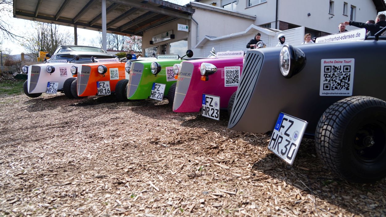 Alle ab 18 Jahren mit normalem PKW-Führerschein können in die Hot Rods steigen. Nach einer kurzen Einweisung und dem Aufsetzen des Helms geht es los – auf kurvigen Straßen, durch Wälder und malerische Dörfer. Das Fahrerlebnis ist intensiv: „Man spürt den Wind, hat nichts um sich herum. Es gibt keine Federung, keine Bremskraftverstärkung – alles ist pur und direkt“, erklärt das Team.