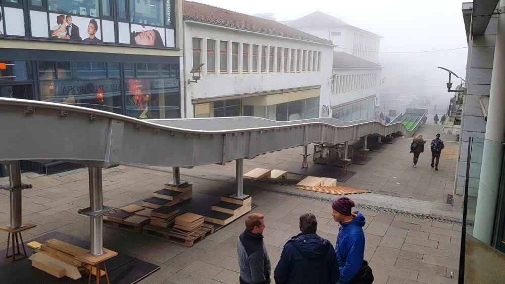 Noch in der gleichen Nacht wurden alle Bauteile zusammengesetzt und fest verbaut. Leider musste man im Nachhinein feststellen, dass die Rutsche ca. 1,60 Meter zu hoch geworden ist. Über Nacht soll nun die komplette Anlage um rund 80cm herunter gesetzt werden. Mit Beginn des Weihnachtsmarktes wird auch die Rutsche in Betrieb genommen. 2,50 Euro solle das Vergnügen kosten, wer hier sparen möchte kann für 10.- Euro gleich fünf mal den Spaß genießen.