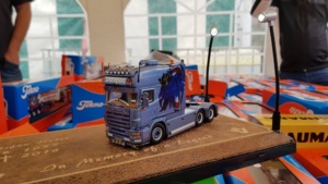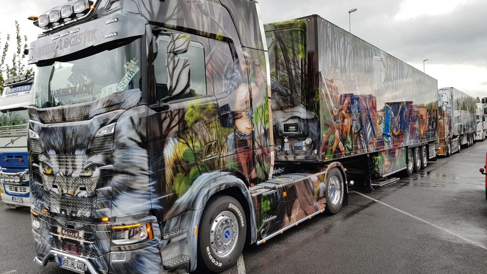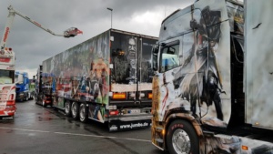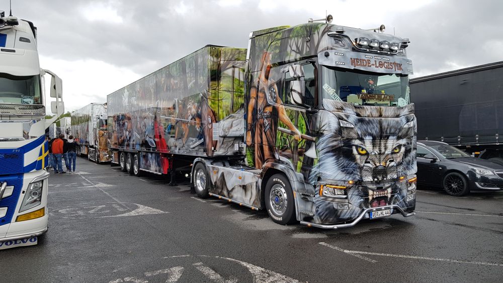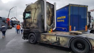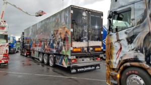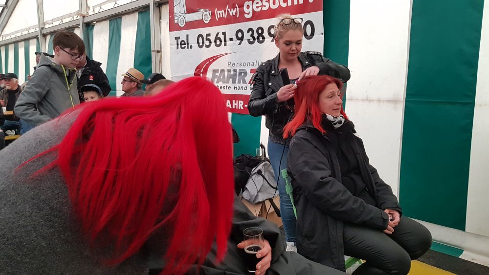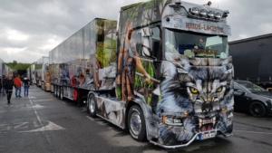 Trotz widrigem Wetter und viel Regen sind 2019 dennoch schon über 350 Trucks der Einladung nach Kassel gefolgt. Viele haben weite Wege zurück gelegt aus Tschechien, der Schweiz, Österreich und natürlich Deutschland. Ronald aus Norddeutschland ist die gesamte Strecke mit dem Fahrrad gefahren, um hierdurch ebenfalls Spenden einsammeln können. Leider konnten wir nicht mehr mit ihm sprechen, denn er war schon wieder mit seinem Rad weiter gezogen. Es gibt viele Teilnehmer die dazu beitragen Gelder zu sammeln. So z.B. die Frisörmeisterin Julia Eckert die den Kunden die Haare kostenlos für eine Spende macht. Der 61 jährige Stefan Huber ein bereitwilliger Spender und bekannt für seine unermüdlichen Einsätze für die Truck Show ist diesmal nicht mehr dabei. Er verstarb plötzlich und unerwartet. Einer seiner größten Wünsche war es seinen Scania Hauber als Modell zu produzieren. Die Macher der Rüssel Truck Show haben diesen LKW nun in Gedenken an Stefan Huber herstellen lassen in einer streng limitierten Auflage von 240 Stück und werden den Erlös in seinem Sinne an die Kinderkrebshilfe Kassel e.V. spenden. Die Truck Show geht noch bis Sonntag und die Veranstalter freuen sich auf jeden Besucher der hilft die Kinder mit einer Spende zu unterstützen.