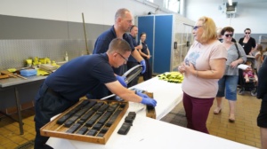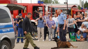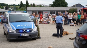 Das Frankenberger Krankenhaus hielt zwei Vorträge, so konnten Interessierte einen tieferen Einblick in die Arbeit im Krankenhaus erhalten. Auf dem THW-Gelände konnten auch die Erwachsenen einmal anpacken. Sie konnten den THW-Bagger bedienen und Holzstämme bewegen. Auch die jüngeren hatten zahlreiche Mitmach-Aktionen zur Auswahl. Zudem konnten Sie ihren Namen auf alte Feuerwehrschläuche drucken lassen. Die Feuerwehr zeigte eine Höhenrettung auf dem Vorplatz, sowie die Rettung einer verletzten Person von einem Dach. Hierbei konnten sich die Besucher ein Bild von der aufwendigen Rettungsaktion machen. Die Polizei organisierte eine Polizeihunde-Vorführung. Ein Fahrzeug wurde angehalten in dem sich ein bereits Polizei bekannter Mann unter anderem wegen Drogenbesitzes befand. Als der Fahrer eine Waffe ziehen wollte, griff der Polizeihund direkt ein. Im Anschluss wurde das Gepäck des Fahrers durchsucht und man wurde fündig. Ein toller Tag der Einsatzkräfte, der von vielem Menschen besucht wurde.