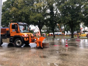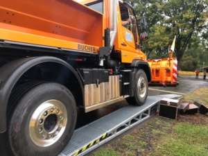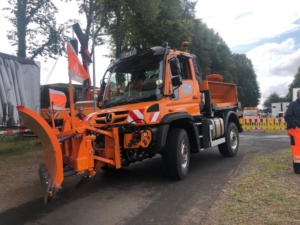 Gudensberg – Am Samstag veranstaltete Hessen Mobil die 2. Deutsche Meisterschaft im Schneepflugfahren in Gudensberg. Insgesamt traten 31 Teams an. Teilnehmer aus neun Bundesländern sowie acht Städten stellten sich dem 450 Meter langem Geschicklichkeitsparcours. Es ging um Zeit und fehlerfreies Fahren. Alle Teams nutzten dabei denselben Unimog Typ 430, Baujahr 2019 mit Streugerät und Schneepflug. Die zwölf Stationen waren realen Situationen im Arbeitsalltag eines Straßenwärters nachempfunden.