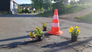 Wolfhagen – Was mit einem Spaß angefangen hat, endet mit der Straßensanierung. Mitte Mai 2018 haben sich die Anwohner des Wolfhager Ortsteil Viesebeck eine ungewöhnliche Protestaktion einfallen lassen (-Wir berichteten-). In der Ortsdurchfahrt (Hauptstraße) wurden kurzerhand 22 Schlaglöcher mit Stiefmütterchen bepflanzt, um auf den schlechten Straßenzustand aufmerksam zu machen.