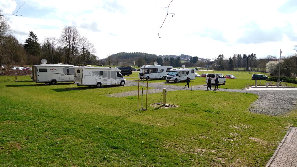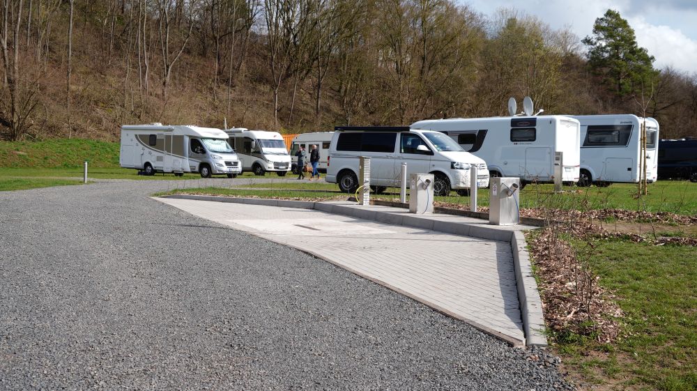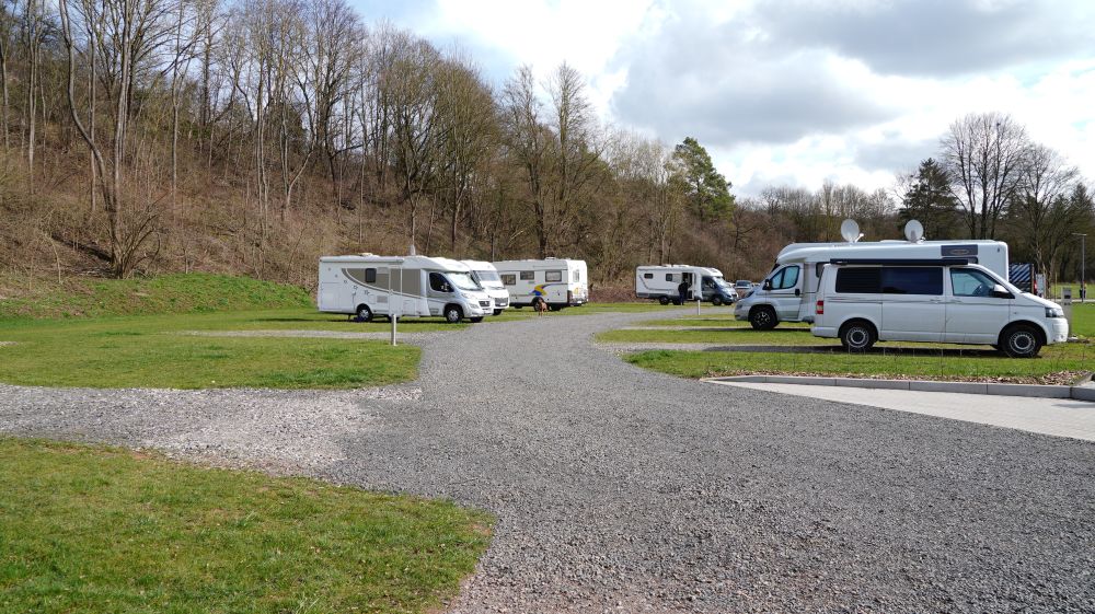 Mit insgesamt 32 Stellplätzen bietet der Platz alles an, was man sich vorstellen kann. Die Anmeldung und Abrechnung erfolgt am Automaten. Wer seinen Platz 6 Tage bezahlt, bekommt den 7. Tag kostenlos dazu. Pro Übernachtung muss man 10 Euro zahlen. Auch der Strom kann am Automaten hinzugebucht werden. Hierfür werden 0,65 Euro pro Kilowatt berechnet. Toiletten und Duschen sind ebenfalls vorhanden. Die Nutzung der Dusche kostet 0,50 Euro. Ein weiterer Vorteil, auf dem gesamten Campingplatz gibt es kostenloses W-Lan. Im Ort gibt es reichlich Einkaufsmöglichkeiten, Restaurants, Lebensmittelgeschäfte und ein Schreibwarengeschäft. Wer sich einen Weg sparen möchte, der kann per Internet frische Brötchen, Backwaren und andere regionale Produkte bestellen, die dann am nächsten Morgen direkt zum Stellplatz geliefert werden. Wer sich mit Internet nicht auskennt, kann auf dem Campingplatz ausliegende Bestellzettel nutzen. In unmittelbarer Nachbarschaft befindet sich das Burgschwimmbad, welches man zu Fuß erreichen kann. Ein großer Vorteil ist auch die Möglichkeit den im Ort befindlichen Bahnhof zu nutzen. Von hier aus kommt man schnell z.B. nach Kassel, Willigen oder Korbach. Rund 10 Kilometer entfernt in Warburg befindet sich auch der Diemelradweg der von Winterberg bis nach Bad Karlshafen führt. Alles in allem ein gelungenes Projekt was sich die Volkmarser Investoren hier haben einfallen lassen.