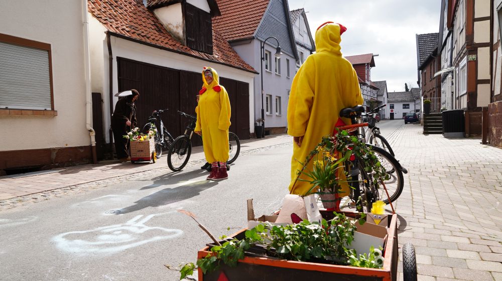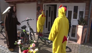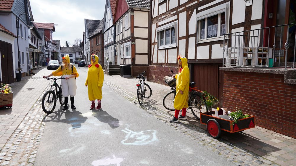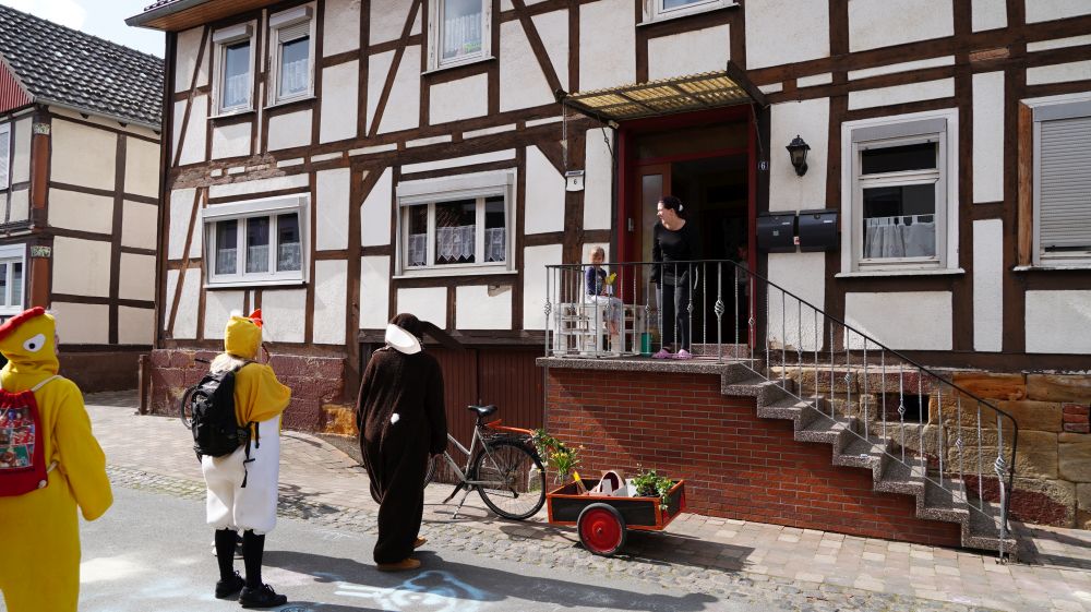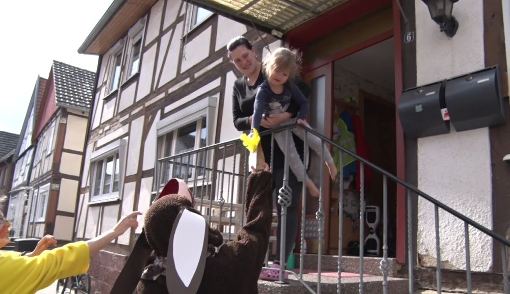 Volkmarsen – Eine ganz besondere Aktion hat sich in der Corona Zeit der Katholische Kindergarten St. Marie in Volkmarsen einfallen lassen. Jetzt wo die Kinder nicht in den Kindergarten gehen können, haben sich die Betreuer zusammengetan und kleine Geschenke mit Schokoladenosterhasen und Eiern gebastelt. Zwei Teams waren dann als Osterhase im Ort unterwegs um die Geschenke zu verteilen.