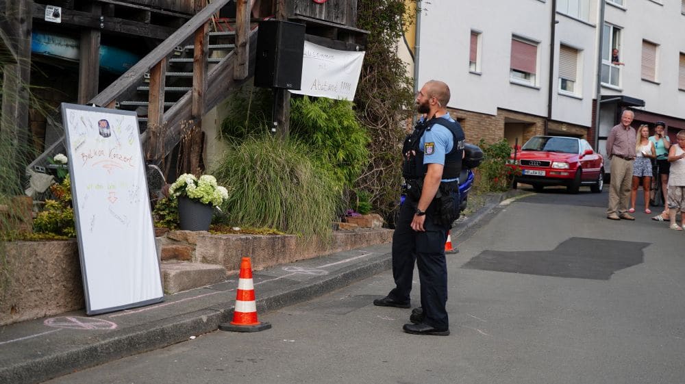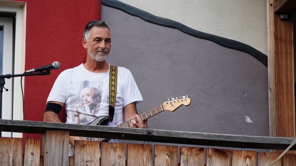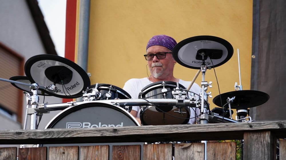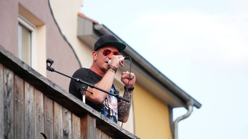 19. mal ist der Bandsänger Stefan Peter nun solo aufgetreten, Corona bedingt. Umso schöner für ihn und seine Bandmitglieder Markus Bachmann, Torsten Armbröster, Christoph Blaszak und Dirk Schmidt, dass beim zwanzigsten Mal die komplette Band auftreten konnte. Vor geschätzt 150 Besuchern wurden 75 Min. gespielt. Ein großer Dank galt aber auch denen, die ihre Balkone zu Verfügung gestellt haben. Ein Dank auch an die Polizei, die am Anfang hin- und wieder gerufen wurden, um nach dem Rechten zu sehen. Stefan Peter erinnert sich hier noch an eine ganz besondere Situation. Es war, Sonntag der 26. April in Kaufungen. Nachdem das Konzert beendet war, fuhren rund drei Minuten später zwei Mannschaftswagen vor. Ein Polizist stieg aus, schaute über das Fahrzeug und meint: „Wie? Ihr seid schon wieder fertig, jetzt wollten wir aber auch mal was hören“. Nur leider war die Band bereits beim Abbauen. Beim letzten Konzert hatten aber immerhin zwei Beamte die Möglichkeit, von Anfang an dabei zu sein. Peter rief vorab die Polizei an, und meldete die Veranstaltung an. Aber hier hatte die Band noch eine kleine Überraschung für die Ordnungshüter. Währenddessen die Beamten die Abstandsregeln beobachtet haben, übergab Stefan Peter ein Band T-Shirt „Balkon-Edition“ mit einem ganz besonderen Zusatz: „Dankeschön an die Polizei, dass Sie für uns da sind“.