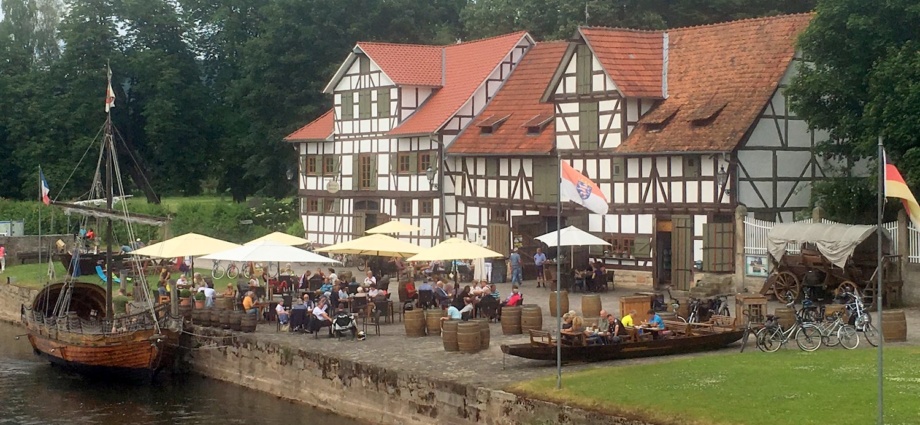 Wanfried – Eines der schönsten Ausflugslokale in Nordhessen ist sicherlich die Hafengaststätte „Zur Schlagd“ in Wanfried. Direkt an der Werra und dem Werratal-Radweg gelegen, ist es schon fast ein Muss hier eine Rast zu machen. Das Restaurant und Ausflugslokal, welches sich nur wenige Meter von der Werra befindet, bietet seinen Gästen neben hervorragenden, meist regionalen Speisen zudem ein besonderes Erlebnis.
