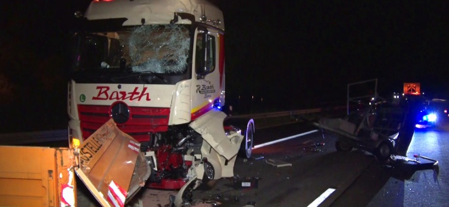 A7: LKW kracht in Baustellenfahrzeug mit Anhänger