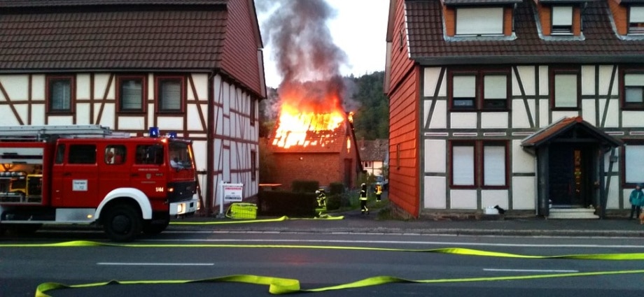 Reinhardshagen – Zum Brand des Dachstuhls einer Scheune kam es am Montagabend gegen 18:30 Uhr in Reinhardshagen-Vaake, in der Strasse „Am Weserufer“. Wie die Polizei berichtet, entfachte sich das Feuer in der ausgebauten Etage des Dachstuhls. Verletzt wurde niemand, da sich zum Zeitpunkt des Brandes keine Personen in dem Gebäude befanden. Der entstandene Gebäudeschaden wird auf rund 55.000 Euro geschätzt. Die Brandursache ist noch unklar.