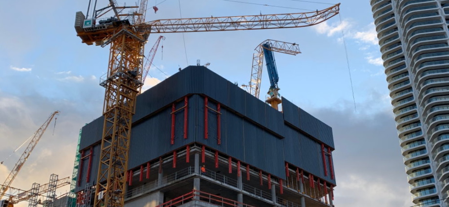 Frankfurt – Auf einer Hochhausbaustelle am Güterplatz ist aus unbekannter Ursache am Donnerstag der Ausleger eines Baukrans in ca. 30 m Höhe gegen ein Hindernis gestoßen. Dabei brach der vordere Teil des Auslegers ab und stürzte auf die oberste Geschossdecke, des im Bau befindlichen Hochhauses. Die Einheiten der Feuerwehr, die um 18:37 alarmiert worden waren, kamen zunächst mit 15 Fahrzeugen und rund 45 Einsatzkräften an der Einsatzstelle an.