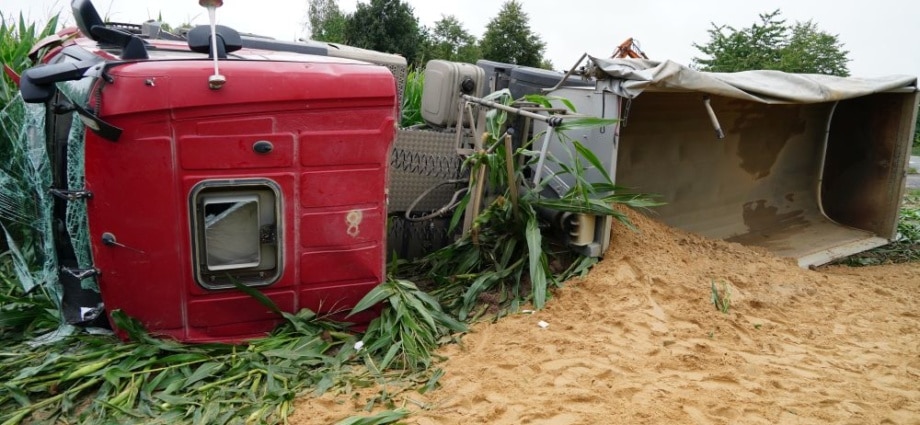 WOH: LKW kommt von der Fahrbahn ab und kippt im Maisfeld um