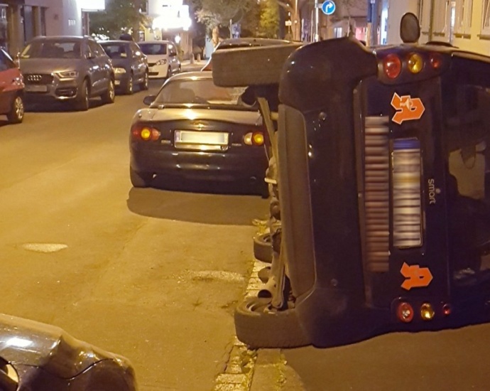 Kassel – Eine sinnlose Sachbeschädigung mit hohem Sachschaden von rund 15.000 Euro beschäftigt derzeit die Ermittler der Ermittlungsgruppe des Polizeireviers Mitte. Bislang unbekannte Täter warfen am gestrigen Donnerstagabend in Kassel-Mitte mit körperlicher Gewalt einen geparkten Smart um, der auf die rechte Seite kippte und erheblich beschädigt wurde. Zeugen beobachteten zwei dunkel gekleidete, flüchtende Personen. Da es keine Hinweise auf einen privaten Hintergrund gibt, erbitten die Ermittler nun weitere Zeugenhinweise. Wie Anwohner der Polizei berichten, hörten sie am Donnerstag, gegen 21 Uhr, einen lauten Knall aus dem Bereich der Mittelstraße.