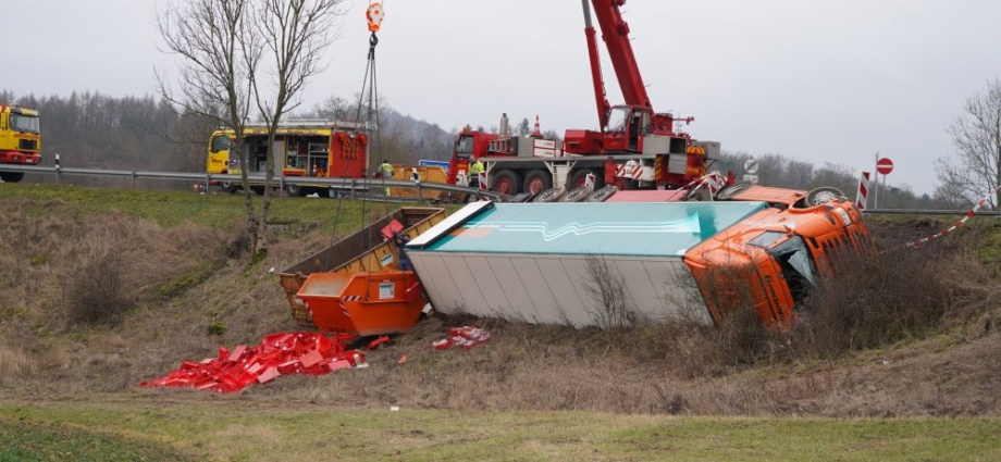 A44: LKW mit 16 Tonnen Fleisch bei Zierenberg verunglückt