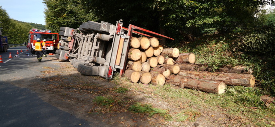 B3: Langholz-LKW bei Wahnhausen umgekippt (Video)