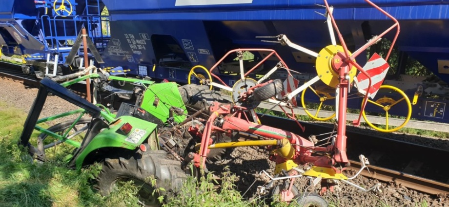 Osthessen: Schlepper von Güterzug erfasst