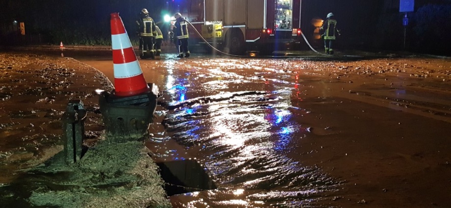 Hofgeismar – Am Dienstagabend zog über Nordhessen ein Unwetter mit Blitz, Donner und Starkregen. Diesmal traf es den Ortsteil Hümme von Hofgeismar besonders heftig. In einem angrenzenden Feld sammelte sich das Wasser und vermischte sich mit der Erde zu einer Schlammbrühe, die irgendwann den Weg in den Ortskern besonders in die Hauptstraße suchte. Die B83 die durch den Ort führt musste komplett gesperrt werden, weil der Schlamm mehrere Zentimeter hochstand, ein durchkommen unmöglich.